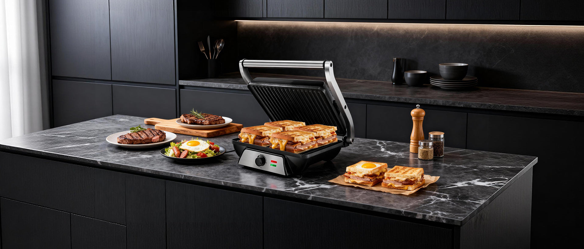 2-in-1 panini press and grill for sandwiches, burgers, steaks, and more