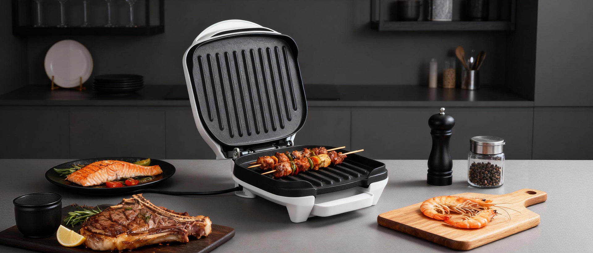 Prepare delicious grilled meals quickly with this compact 2-Serving Electric Indoor Grill and Panini Press. Designed with non-stick plates and a convenient floating hinge, it handles sandwiches, meats, and snacks of varying thickness with ease.